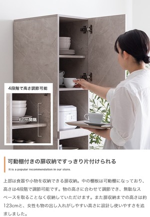 【耐荷重】扉収納(可動棚、底板):(各)約8kg、スライドトレー:約8kg、オープン収納(可動棚、底板):(各)約8kg、浅型引き出し:約5kg、深型引き出し:約5kg