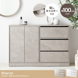 コンパクトサイズながらも収納力抜群な『Sharon(シャロン)』キャスター付きキャビネット。2枚の可動棚付きの扉収納とたっぷり入る3杯の引き出しは、雑多な生活感を隠し、お部屋をすっきりと演出。足元には正面から見えない隠しキャスター付きなので使う場所を選ばず、ワンルームやリビングにも置きやすくなっています。